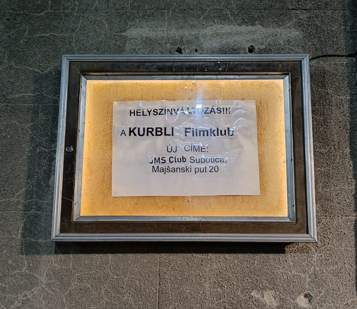 Úgy alakultak a körülmények, hogy a vetítéseinknek otthont adó helyszínt elhagyjuk és a március utolsó moziját, Janisch Attila közönségtalálkozójával, már az új színhelyen mutatjuk be. Köszönjük az elmúlt öt évet, a „szabadkai vasútpályaudvarral szemben,...
