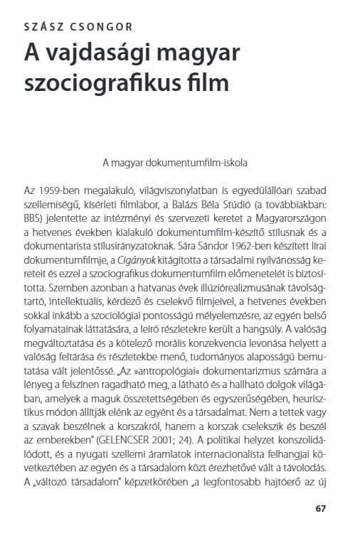 Szász Csongor: A vajdasági magyar szociografikus film (tanulmány)