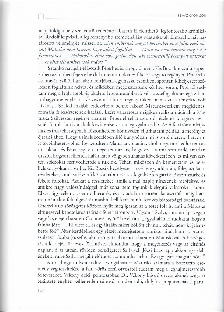 A Matuska című film bemutatója után többek között arról folyt a beszélgetés, hogy mit is jelent a két települést, Csantavért és Biatorbágyot összekötő történet Matuska Szilveszter ismerői számára.